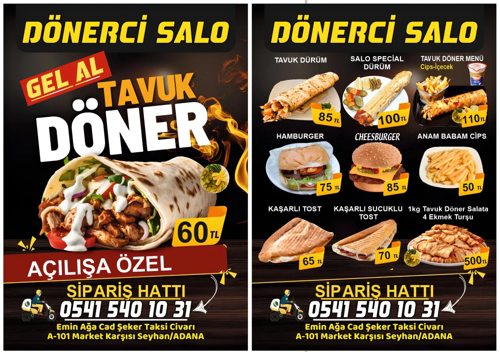 Dönerci Salo’nun enfes menülerini tatmak için daha fazla beklemeyin. İster Seyhan’daki yerimize gelin, ister aşağıdaki butondan bize ulaşarak hızlıca sipariş verin!